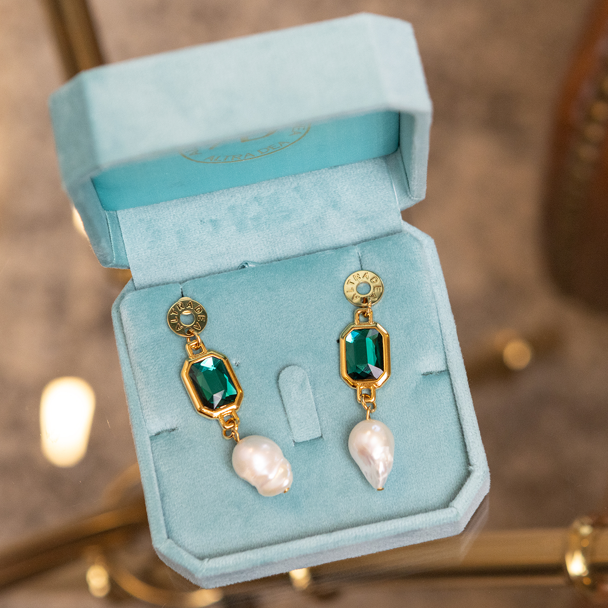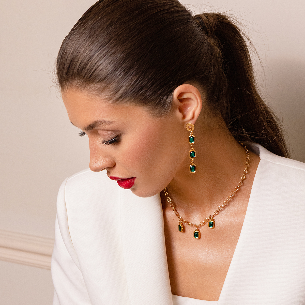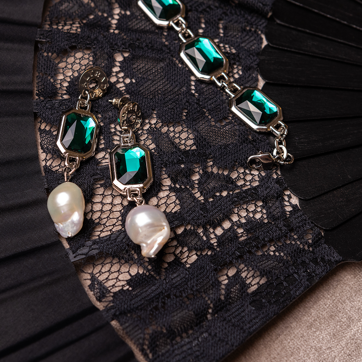 To harmonia blasku i elegancji stworzona dla kobiety, która łączy klasykę z lekkością i pewnością siebie. Kryształy w odcieniach szmaragdu i aurora boreale odbijają światło jak sceniczne reflektory, a perła barokowa podkreśla piękno niedoskonałości.