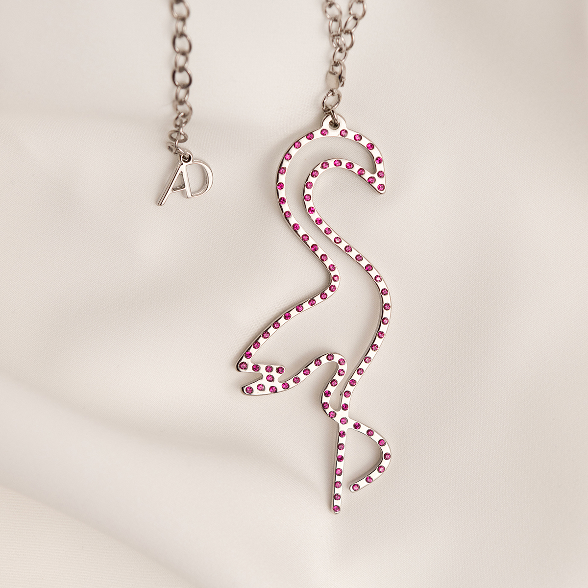 Srebrny Naszyjnik Flamingo fuksja