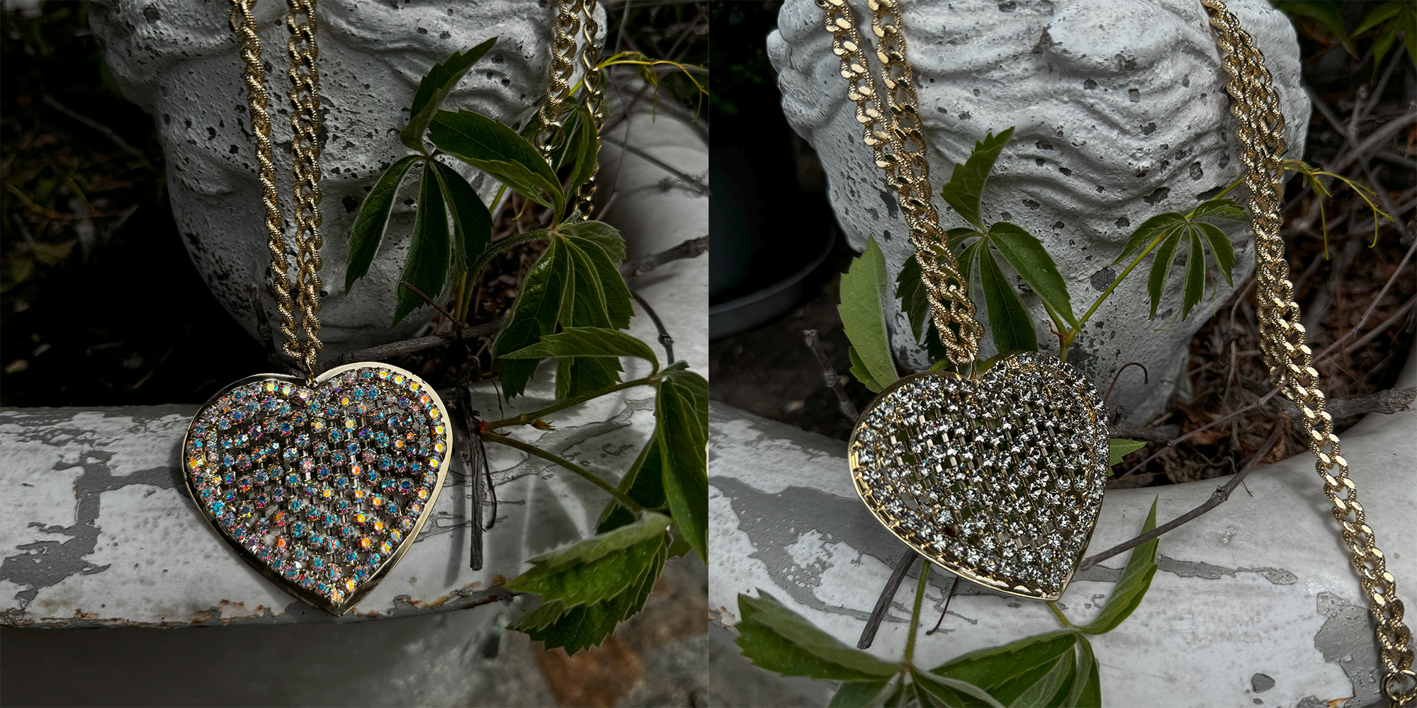 Długi, naszyjnik z okazałym sercem przyciąga spojrzenia i nie pozwala przejść obojętnie.