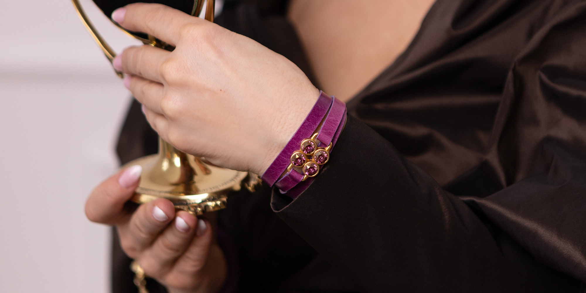 Kolekcja Naya to historia o pewności siebie, która rozświetla każdy gest. Potrójny splot naturalnej skóry i głębia kryształów Swarovski tworzą biżuterię, która żyje razem z Tobą – przy każdym ruchu dłoni, w każdym świetle dnia.