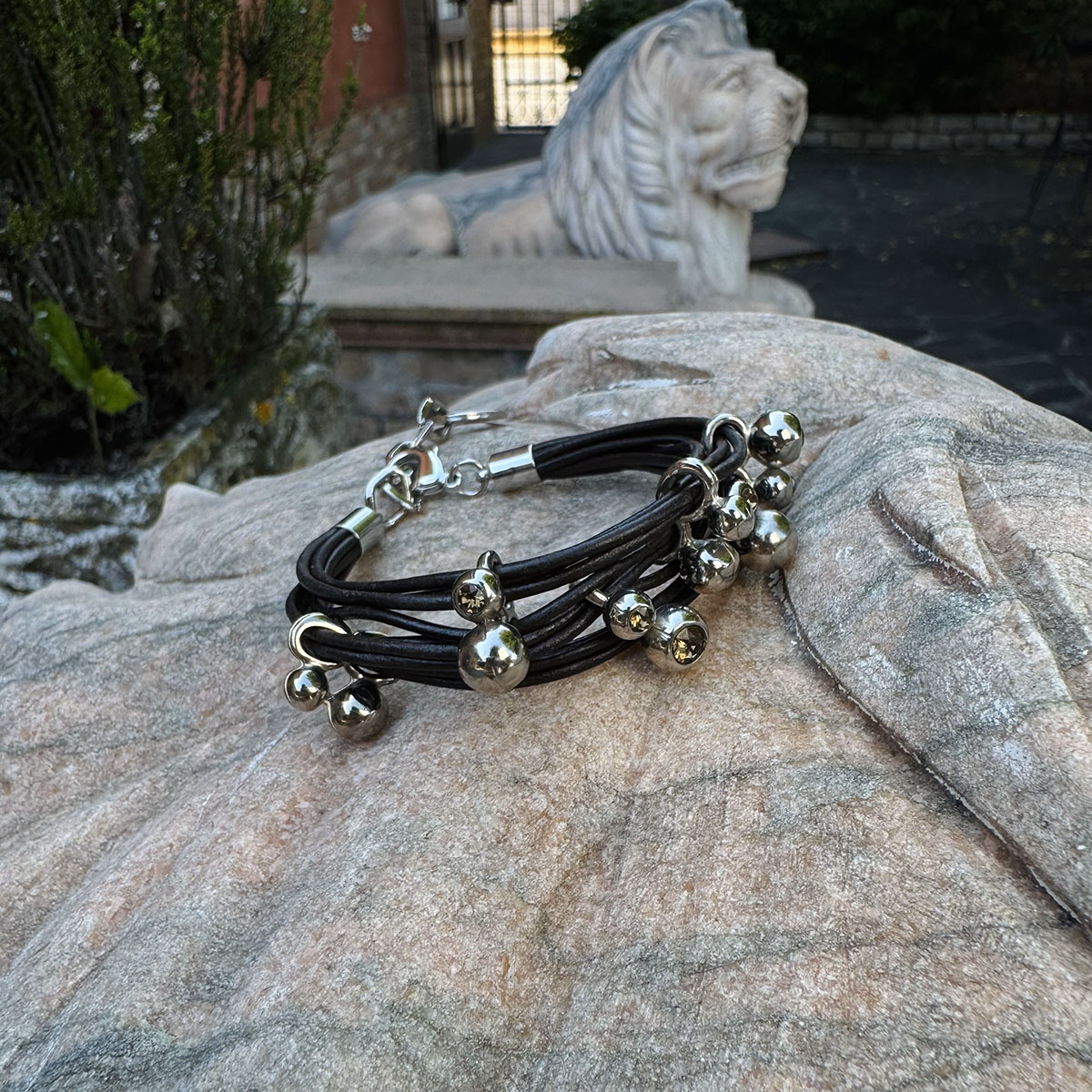 Mocna, elegancka, ponadczasowa. Ciemny brąz i srebro w klasycznej odsłonie, a ciemnobrązowe kryształy Swarovski dodają głębi i luksusu. Bransoletka, która mówi: „mam klasę”.
