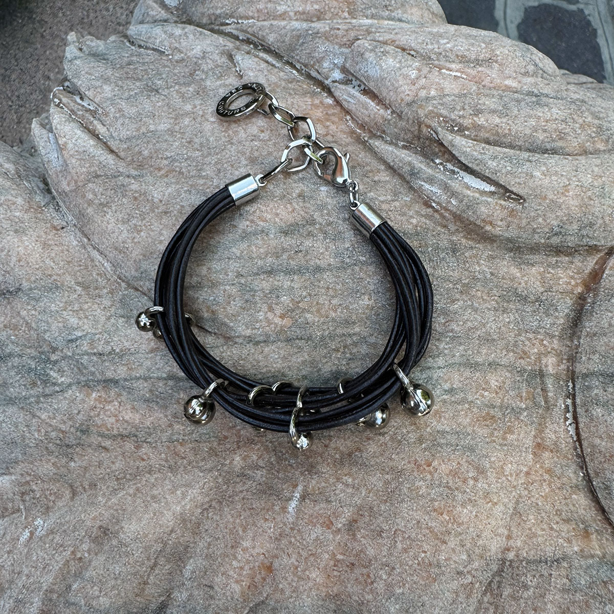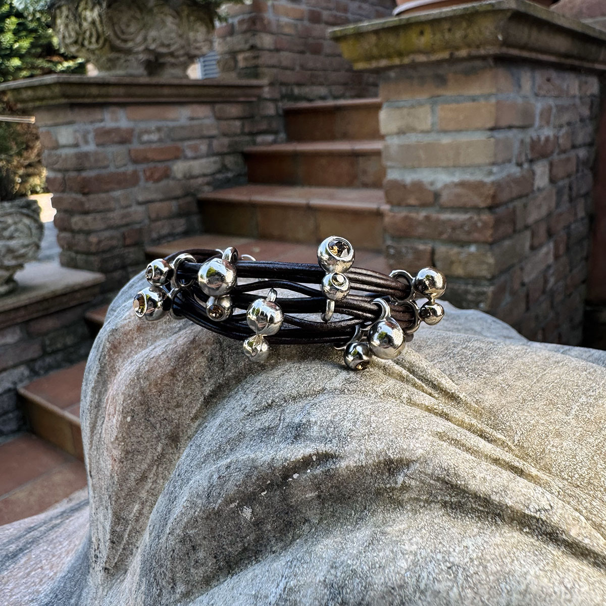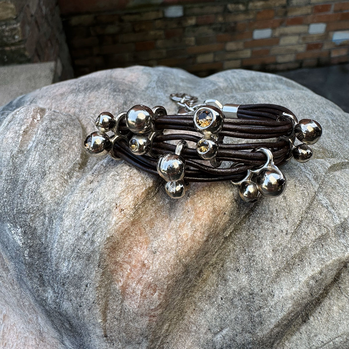 Bransoletka Brio – Ciemnobrązowa skórka, srebrne wykończenie, ciemnobrązowe kryształy Swarovski
