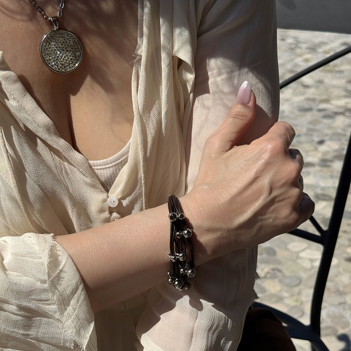 Ciemnobrązowa Bransoletka Brio Srebrna