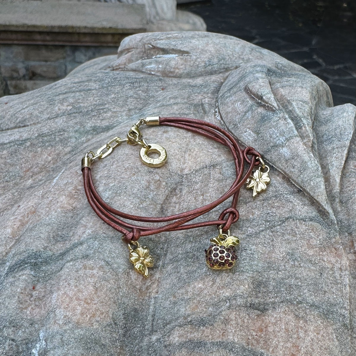 Głęboka zieleń spotyka się z połyskiem złota. W centrum – jabłuszko z 23 ciemnozielonymi kryształami Swarovski i dwie koniczynki, które przy każdym ruchu przypominają, że szczęście sprzyja tym, które błyszczą po swojemu.