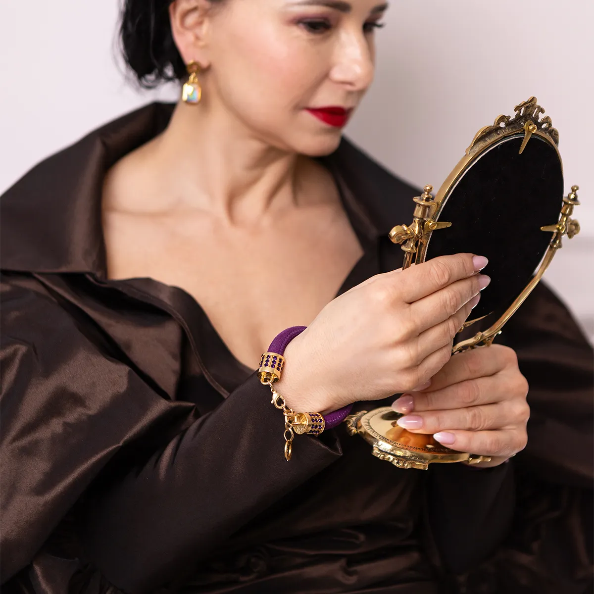 Fioletowa bransoletka Velvet to propozycja dla kobiet, które cenią dodatki o bogatej teksturze i szlachetnym wykończeniu. Wykonana z miękkiej skóry zamszowej, urzeka subtelnością, będąc jednocześnie wyrazistym akcentem każdej stylizacji.