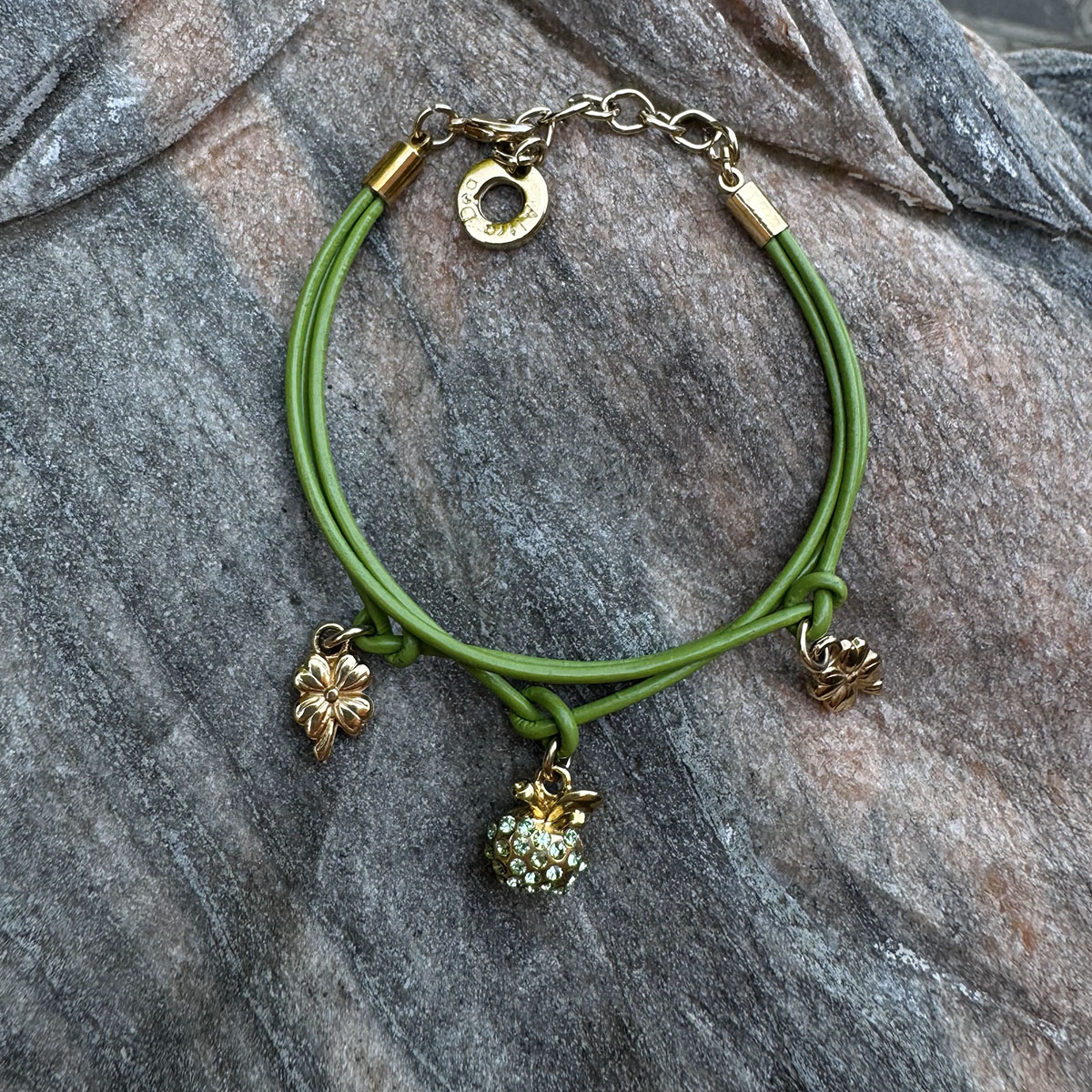 Bransoletka Fruttata – jasnozielona skórka, złote wykończenie, jasnozielone kryształy Swarovski