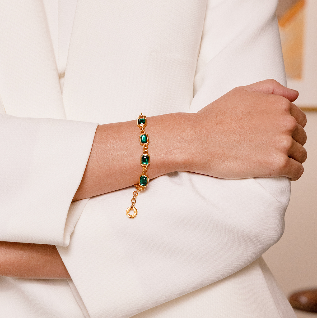 • trzy kryształy Swarovski w intensywnym szmaragdowym kolorze Emerald
