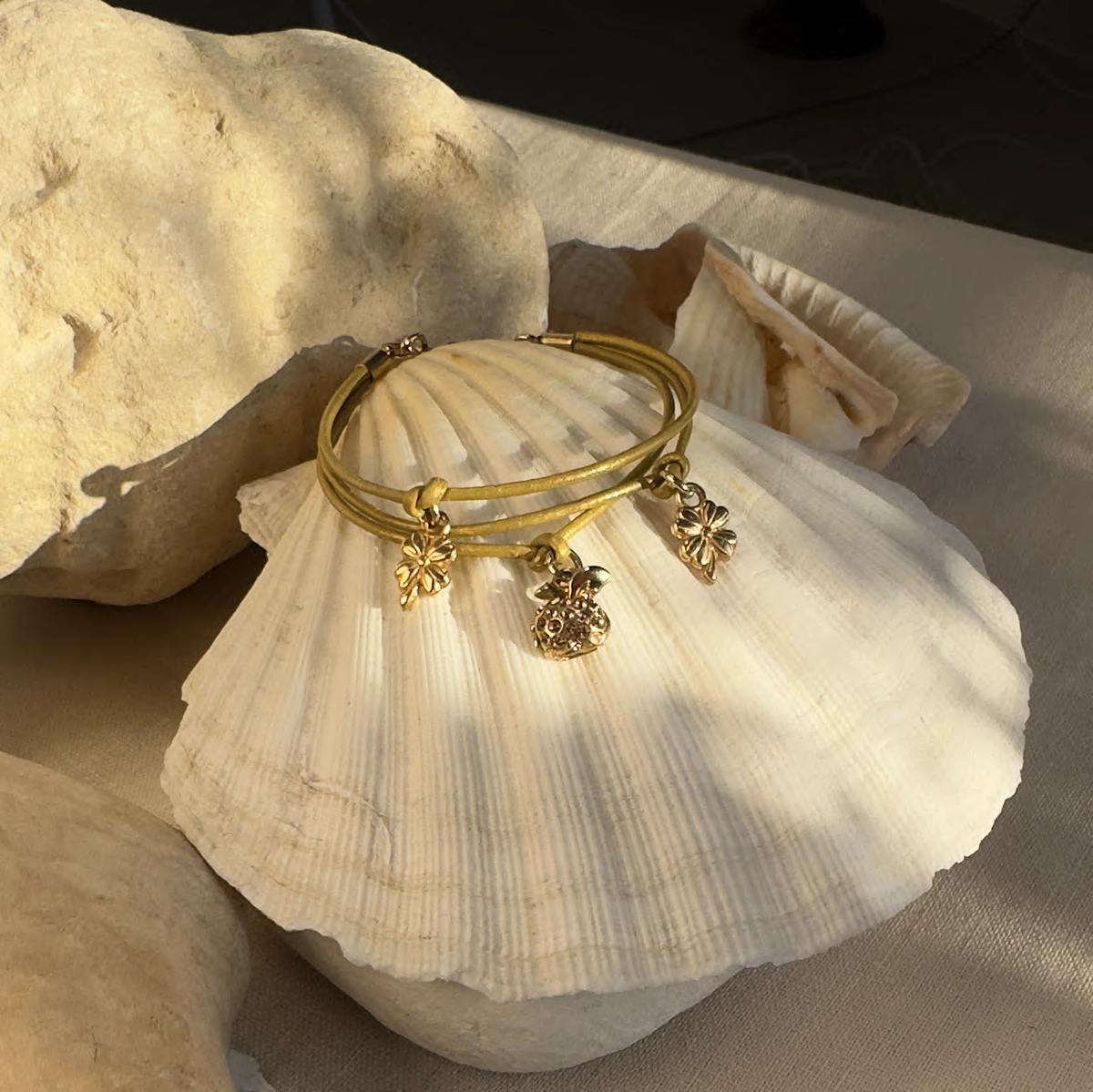 Bransoletka Fruttata – Ciemnozłota skórka, złote wykończenie, kryształy Swarovski Light Topaz