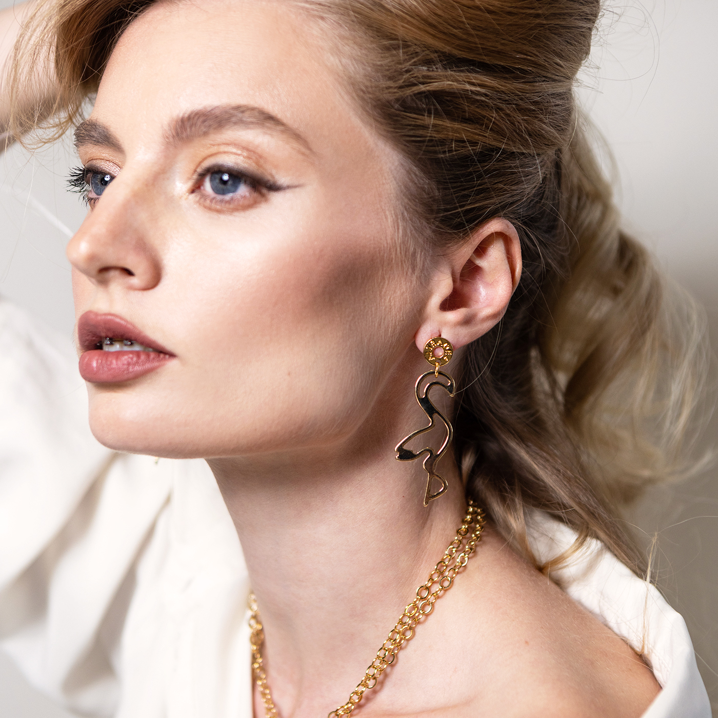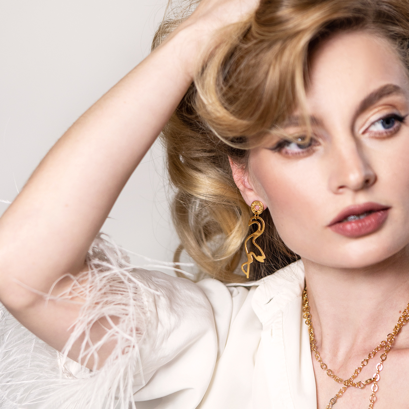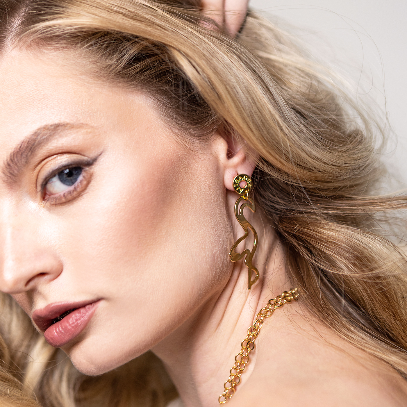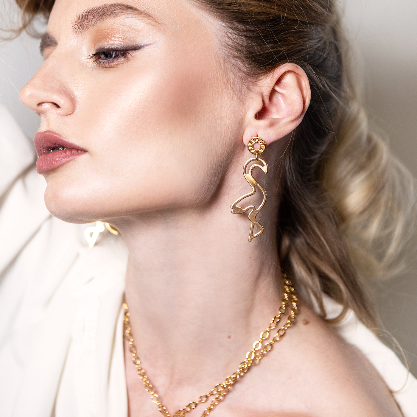 Lekkie kolczyki w kształcie flamingów barwy złotej. Są minimalistyczne, wyważone, a jednocześnie przyciągają uwagę odbijającym się od nich światłem. Sprawdzą się na co dzień i na wyjątkowe okazje, bardzo komfortowe w noszeniu.